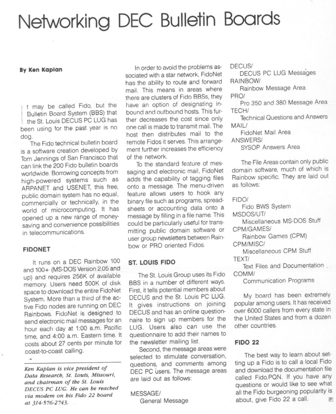 | Image of Article by Ken Kaplan: "Networking DEC Bulletin Boards"