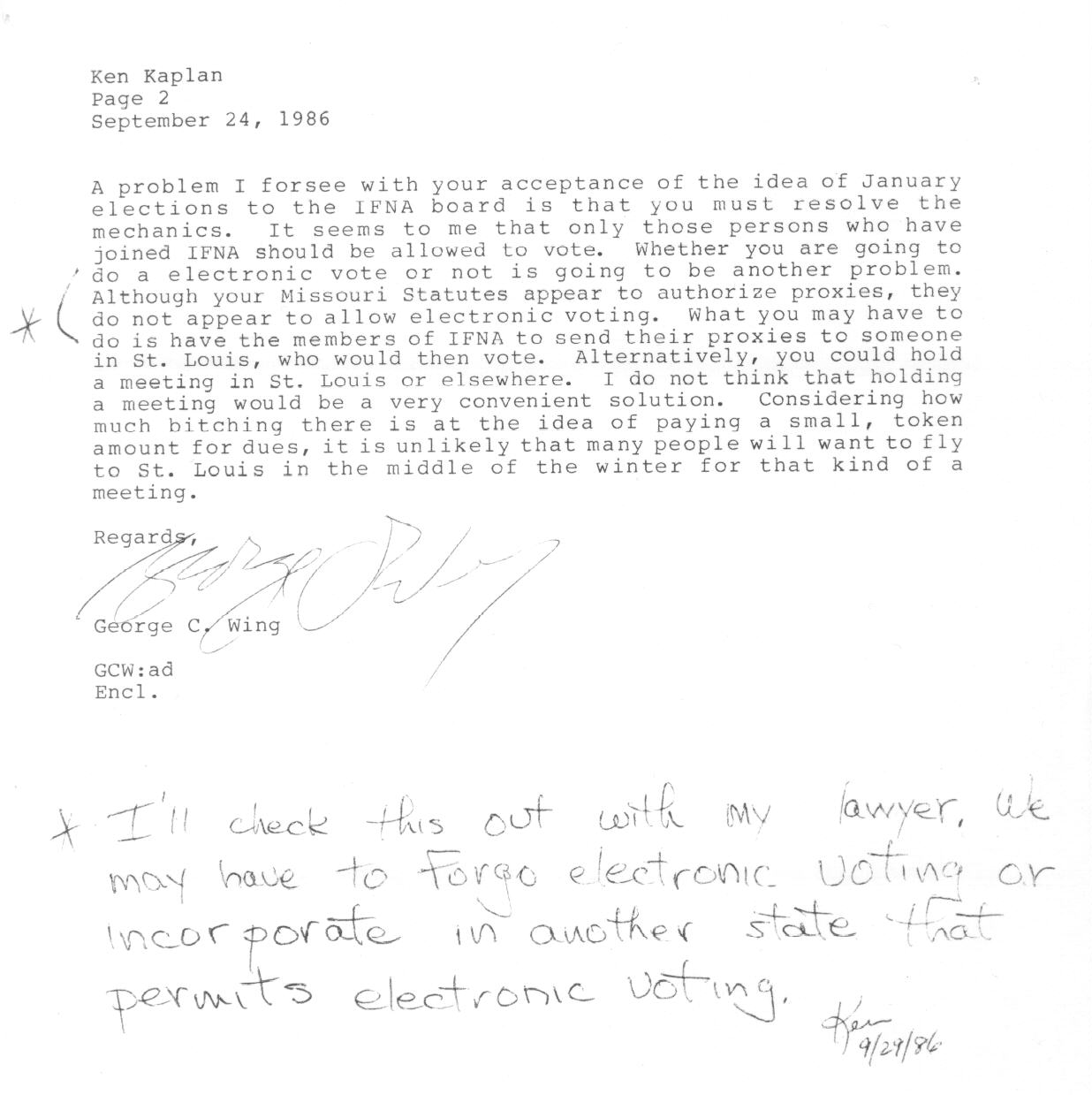 | Letter from Attorney George C. Wing to Ken Kaplan Regarding FidoNet (September 24, 1986) (Page 2)