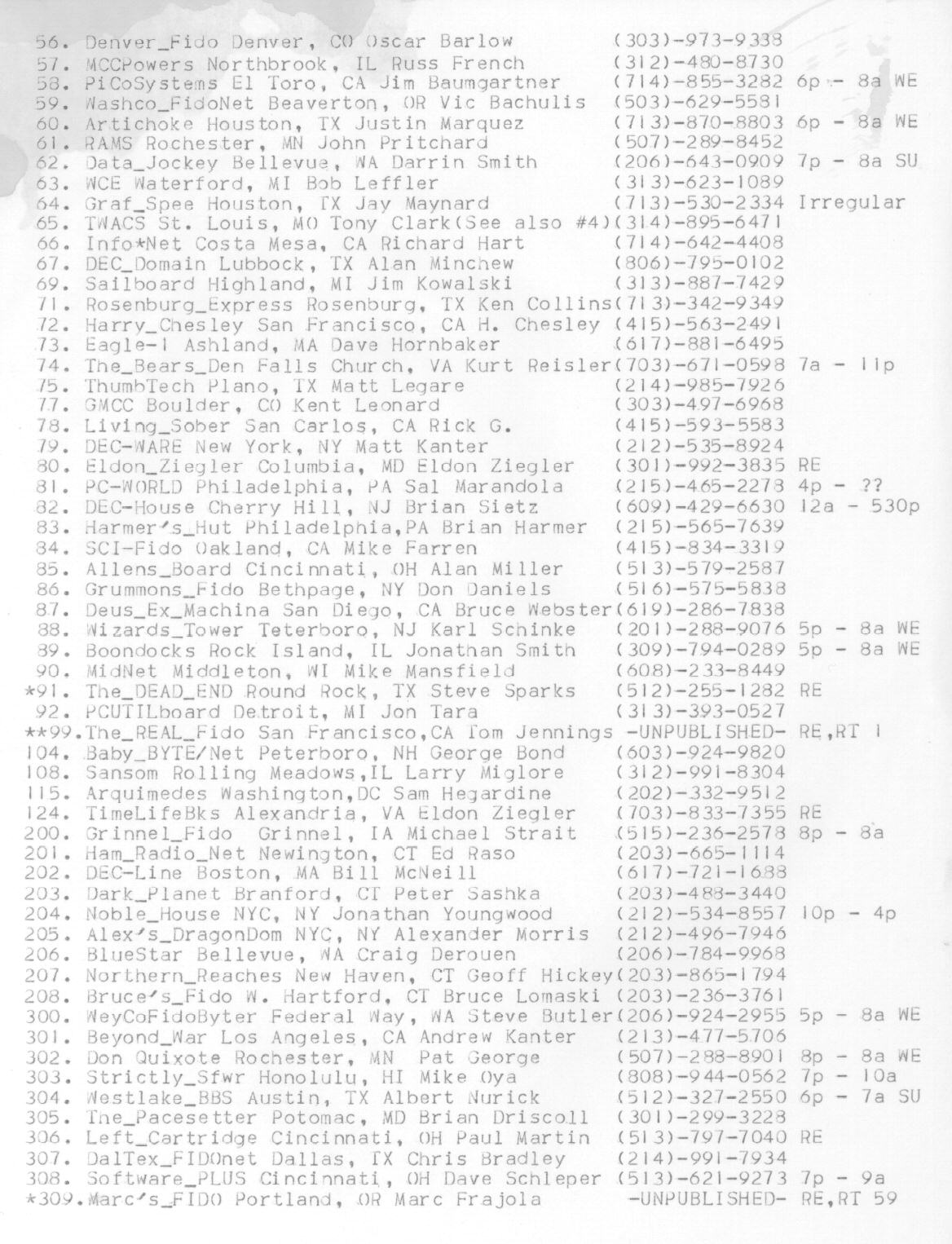 | List of Fido Based Bulletin Board Systems (November 9, 1984) (Page 2)